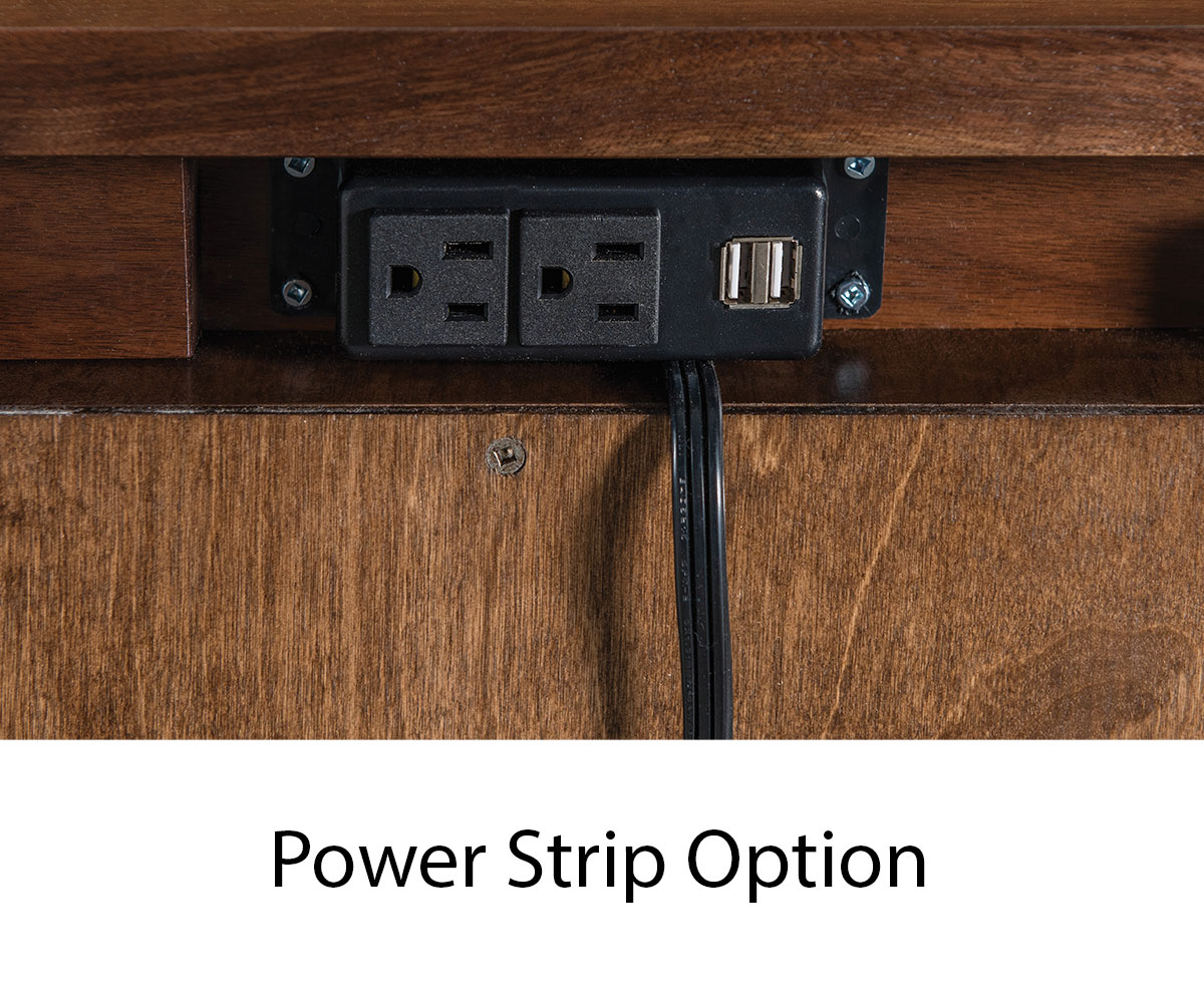 Options: • LED touch night light • Lockable sliding top to show a security tray; also includes power strip
