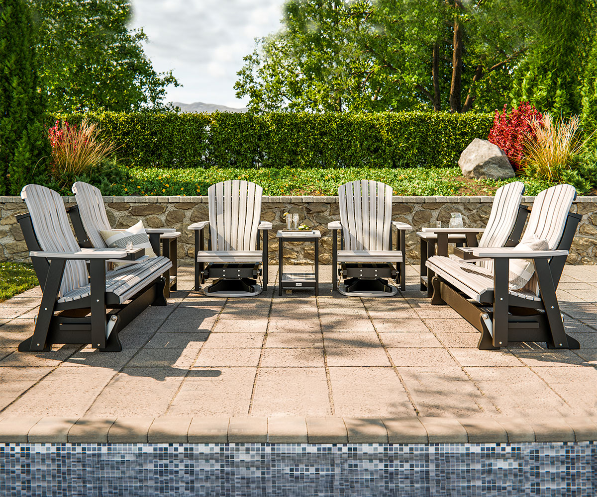 This Collection Includes: • 5′ Comfort Back Glider • 4′ Comfort Back Glider • 2′ Comfort Back Glider • 2′ Comfort Back Swivel Glider • Classic End Table