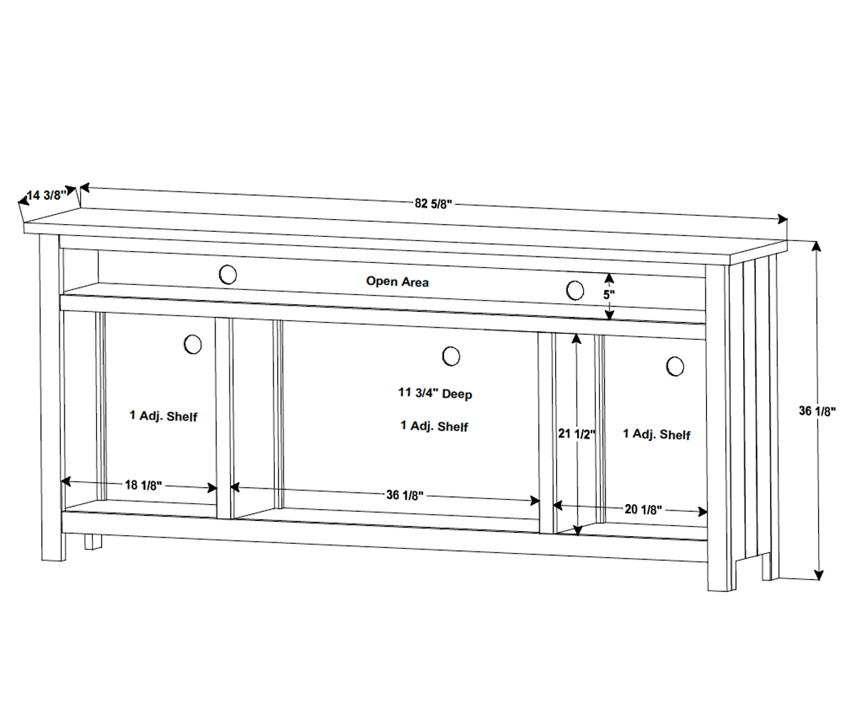 Dimensions: 82⅝”W x 14⅜”D x 36¼”H